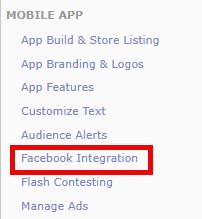 - In your Futuri Control Room account, navigate in the left-side menu to Mobile App > Facebook Integration.