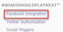 - After authorizing your Facebook account, navigate in Control Room to #WHATSHOULDPLAYNEXT > Facebook Integration.