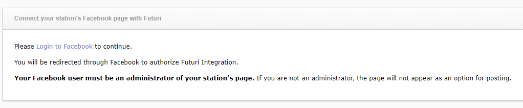 NOTE: In the event that the Facebook administrator who set up the link loses access to the station page, Futuri will also lose access and the integration will need to be established again.