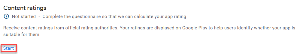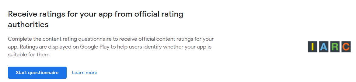 - Click Learn More to read about Google's content rating policy. Then, click Start questionnaire.