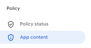 - Then, navigate to the App Content section under Policy in the menu on the left-hand side.