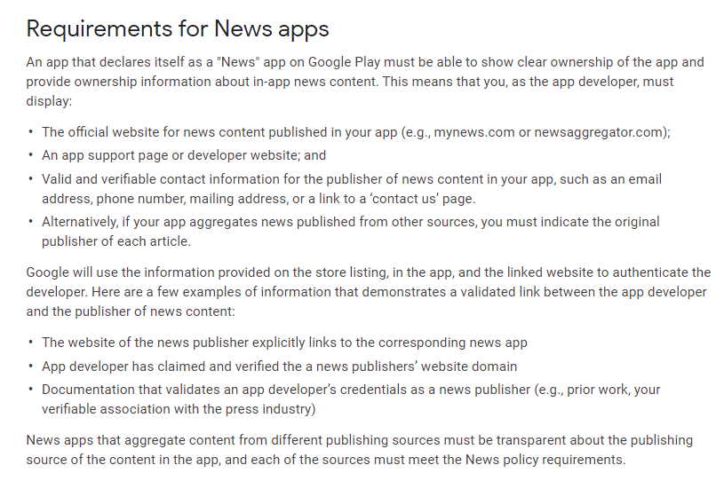 For tips on what to provide, you can read more about Google Play's News policy by clicking the link shown or review these tips that Google provides: