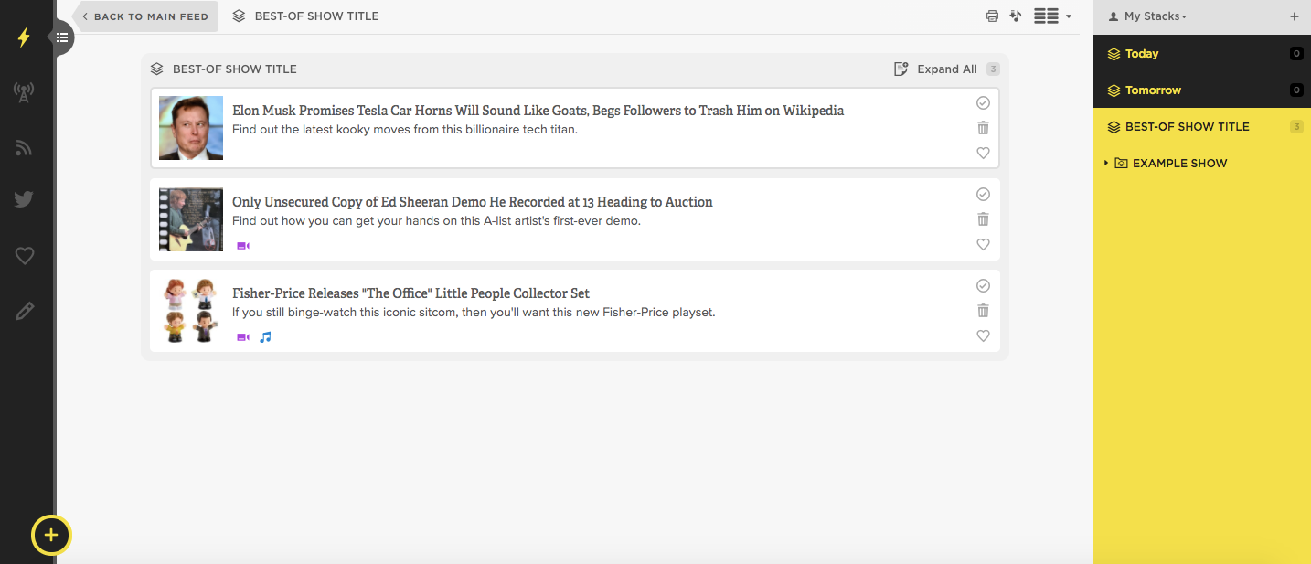 A great way to save time and maximize usage of content is to create "Best-Of" stacks in Prep+. In this way, you can repurpose your Prep+ content curated during the week for weekend/vacation or best-of rebroadcasting.