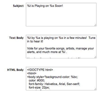 - Song Alerts - The message a listener receives when their chosen song plays