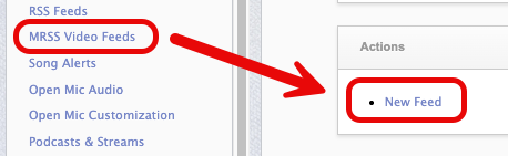 - In Control Room, navigate to MRSS Video Feeds and select New Feed.