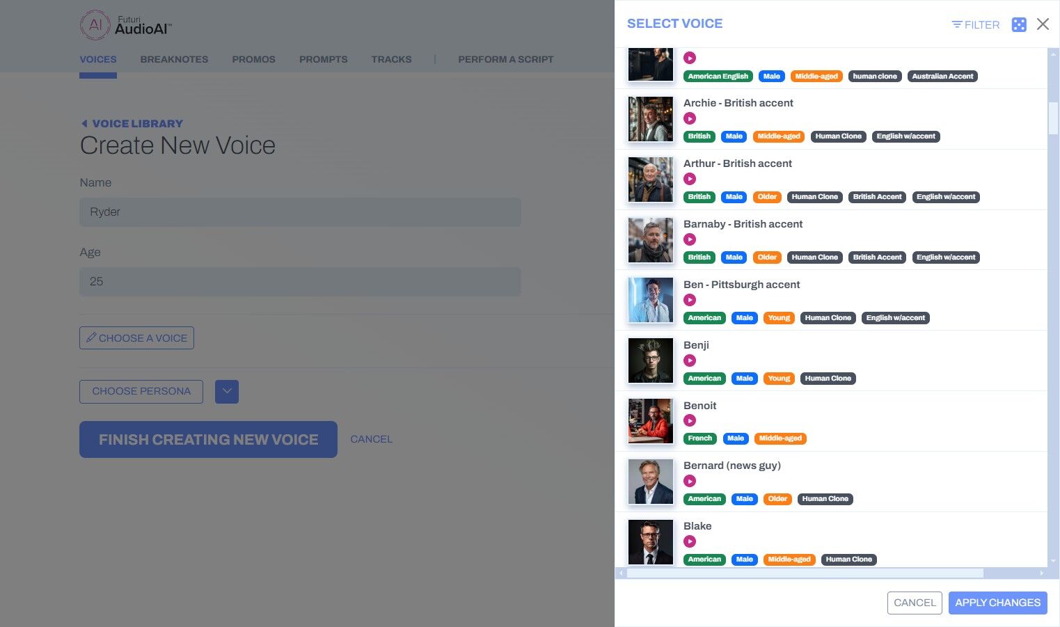4. Next, click CHOOSE A VOICE to view all the options in VoiceAI's Voice Choice Library.