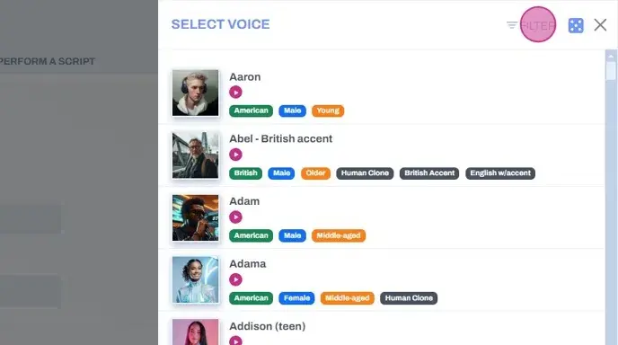 3. Choose an age for your voice. The age doesn't affect the sound of the voice, but it provides perspective when creating artful content.
