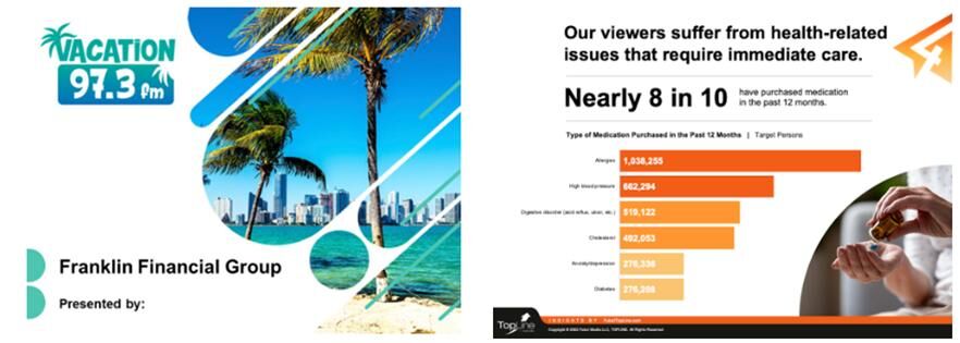 Example: I need to show how my station(s) would offer the right audience to gain more customers for Jiffy Lube. They’re currently focusing on a 100% billboard campaign, and I need to show them why my medium and station(s) would be better. I also want to show why OTT/CTV and digital display advertising would benefit them.