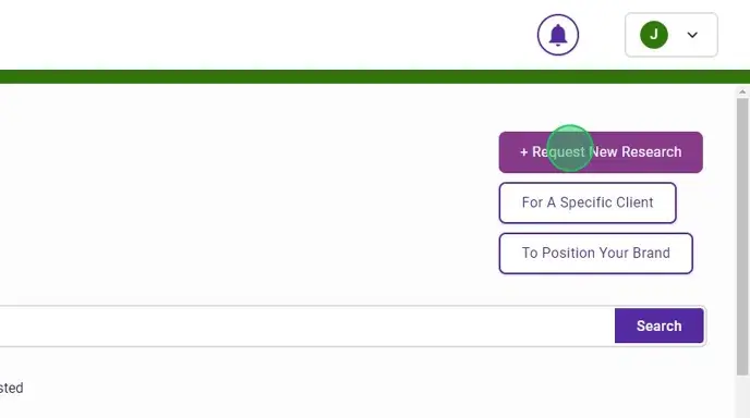 2. Hover over the + Request New Research button in the upper right.