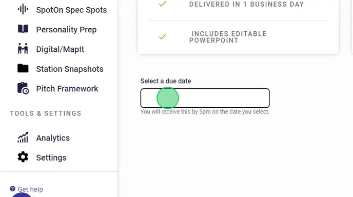 The date selector will default to the first available date for your selected deliverable.
