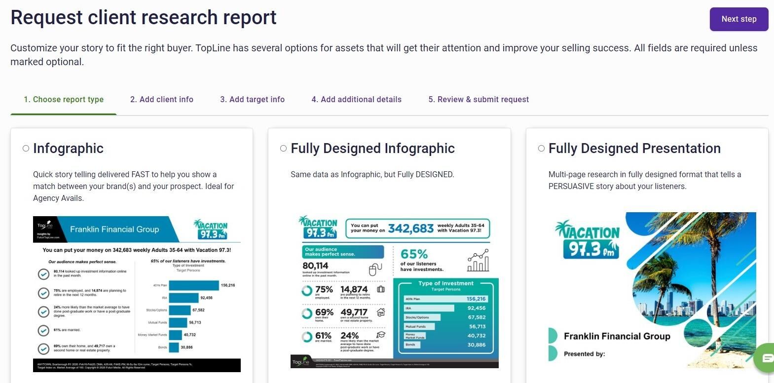 4. Choose Infographic if you need a quick one-sheet to tell your research story.