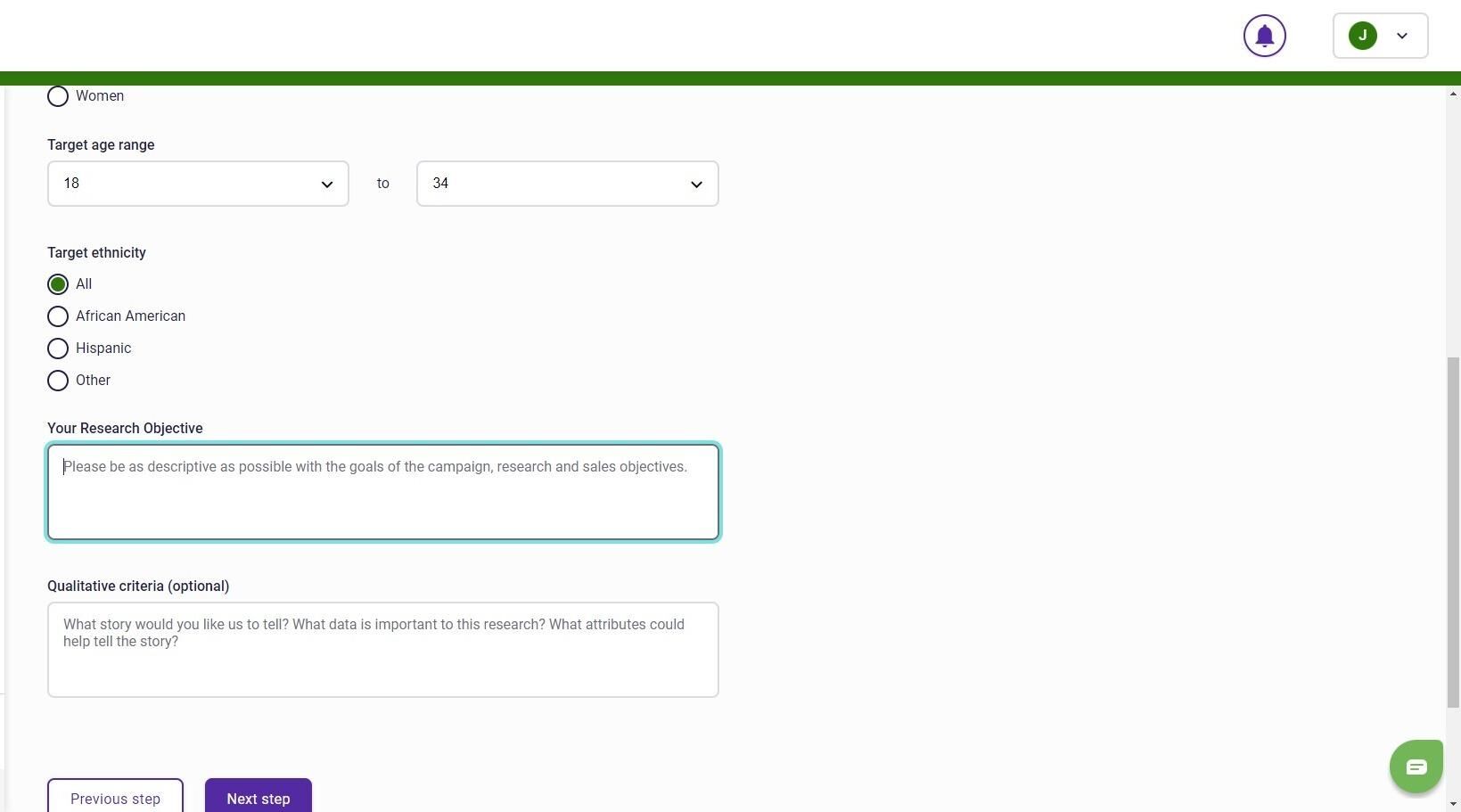 9. The most important part of the request is Your Research Objective in the target info section. This is where you explain exactly what research story you want to tell.