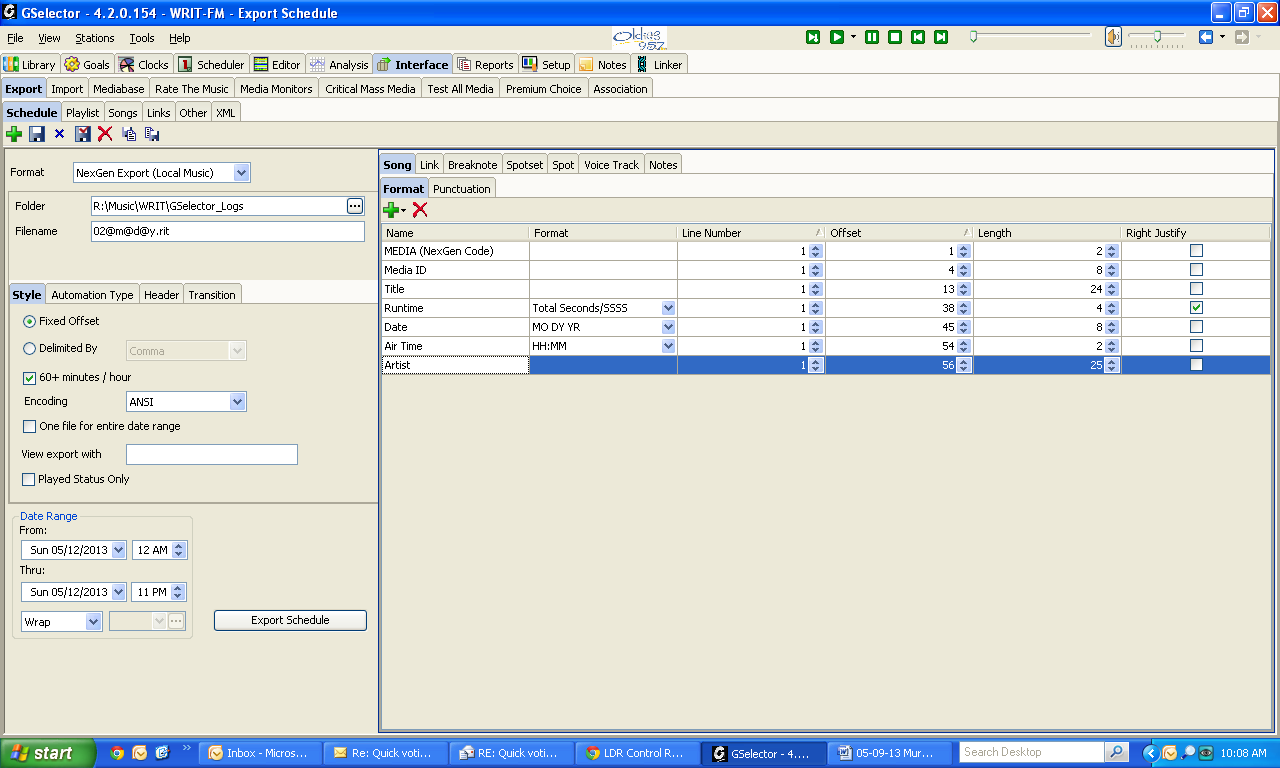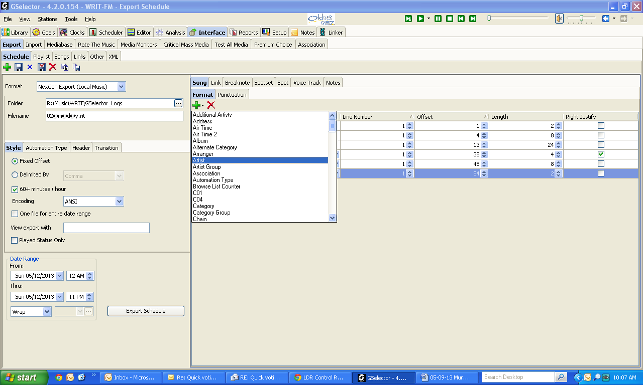 NOTE: These instructions are designed for GSelector stations. If you use a different music scheduler and need to add an artist field to your log export, please contact your music scheduler's support team for assistance.