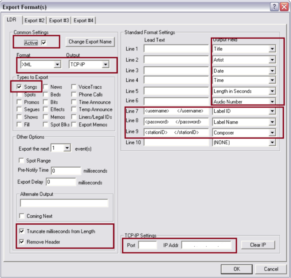 Fill out the export details as listed in the screenshot below. The credentials on lines 7 through 9 must be obtained from Futuri VIP Support.