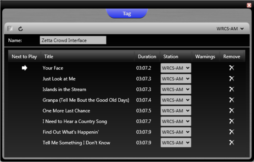 Setting up the Tag in Zetta is pretty simple. From Zetta’s Library module, choose Tags and click the Add new media button to add a new Tag. Select the correct station in the picker on the right-hand side of the top row. Give the Tag a name that can be recognized easily. This name will appear in the Zetta Crowd Interface application, in the drop-down choices mentioned above. Finally, drag songs to the Tag window until all of the desired songs have been added, making sure to choose the correct station in the Station column for each song. Select Save to save the Tag, and it will then be ready to be selected in the Station Config tab of the Zetta Crowd Interface application.