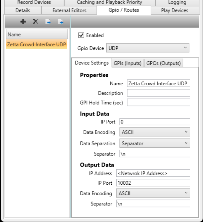2. Make the GPIO Device type (the drop-down box under the “Enabled” checkbox) UDP.