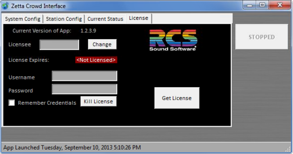 Licensing the Zetta Crowd Interface is accomplished via the License tab.