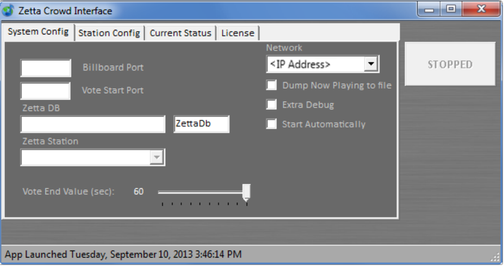 Use the first two configuration tabs (System Config and Station Config) to tell the application how to find Zetta and how to find Futuri.
