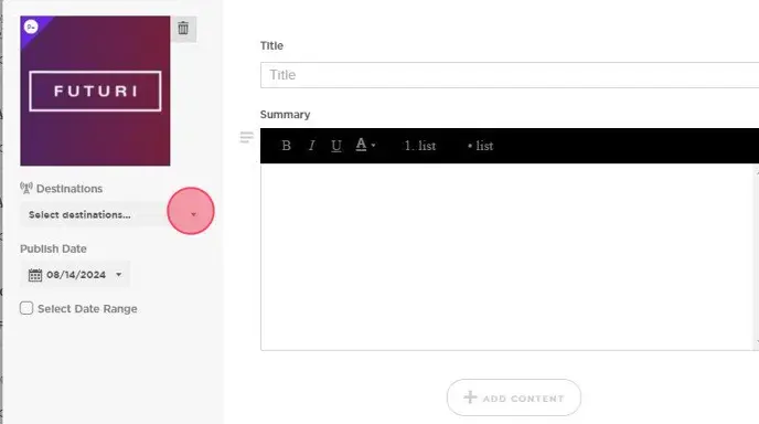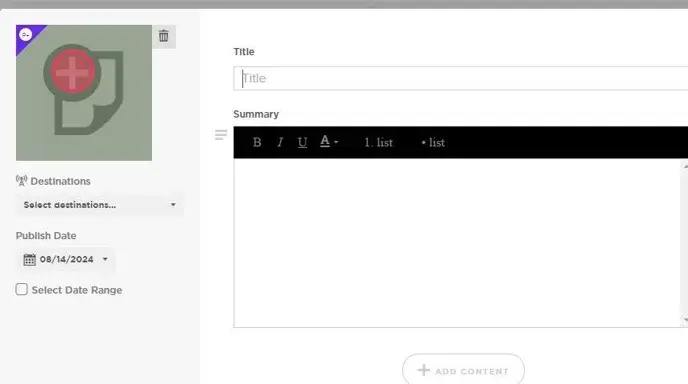 3. Click + ADD CONTENT to links, audio, video and more.