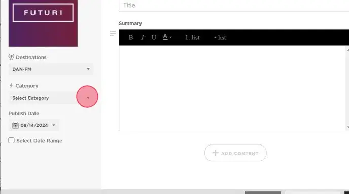 6. Select a Category for the content.