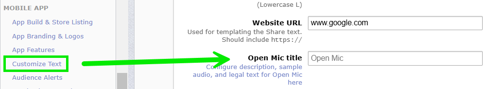 - Customizing the Open Mic Page of Your App