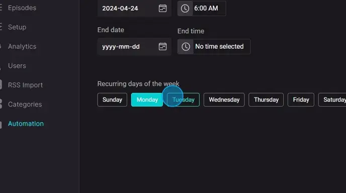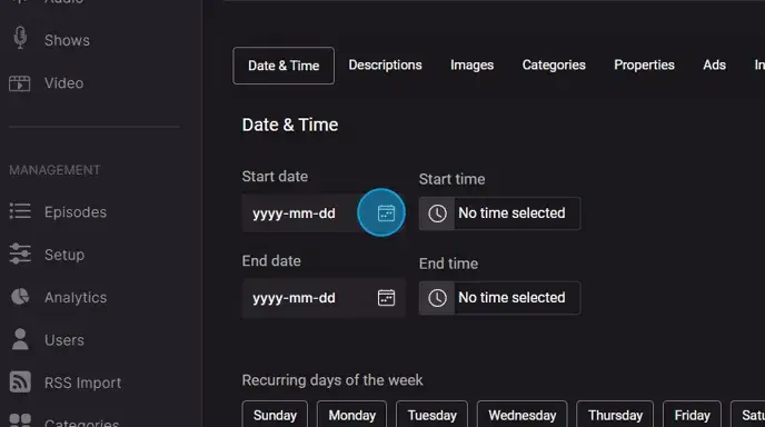 3. Use the calendar and clock options to specify the time span of the segments you want to use for your episodes.