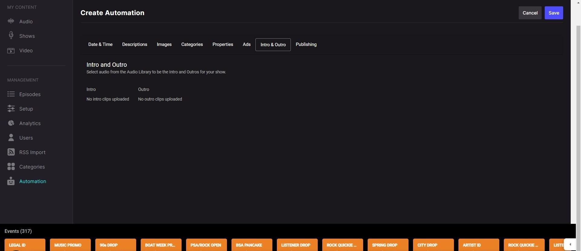 12. If you have uploaded your own Intro and Outro files, you can select them here.