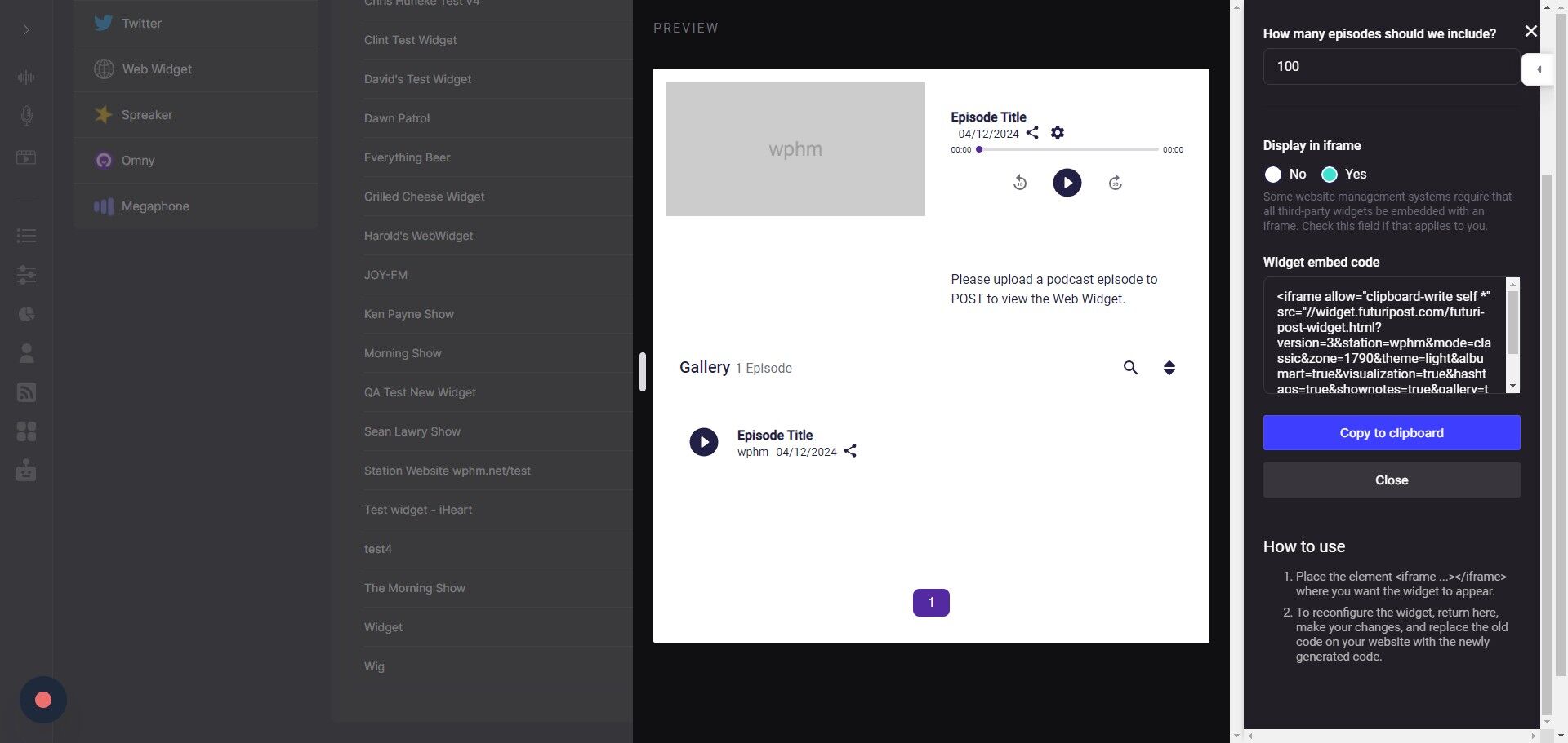 8. Select how many of the most recent episodes you would like to display in the widget.