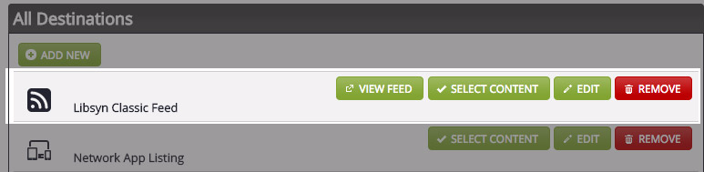 Under ‘All Destinations’ you should see the name of your podcast. Click the Edit button.