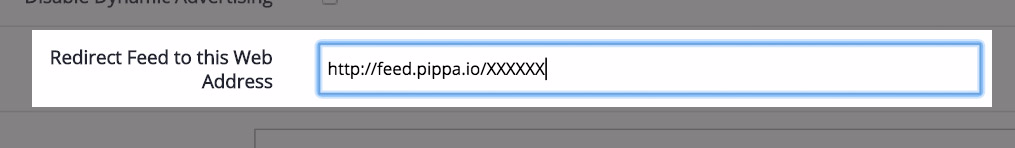 You’ll see a place to “Redirect Feed to this Web Address.” Enter or paste your Pippa feed URL here. Hit the Save button.