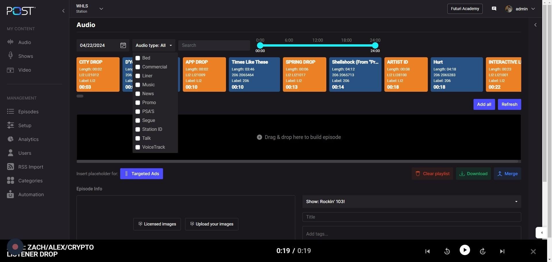In addition to all the great features that POST provides, you can also use POST as a station logger. With POST Logger, you can give the Sales Assistants, Sales Managers, Production Directors, or anyone else the ability to download audio from POST without the risk of them inadvertently posting to your station's website or Social Media. In addition, POST is web-based, so you can access audio from anywhere inside or outside the radio station.