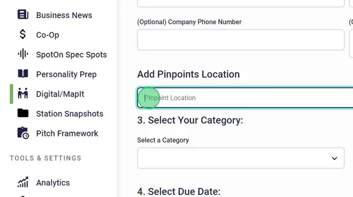 6. On MapIt requests, you have the option to input a business's location(s) in the Add Pinpoints Location field.
