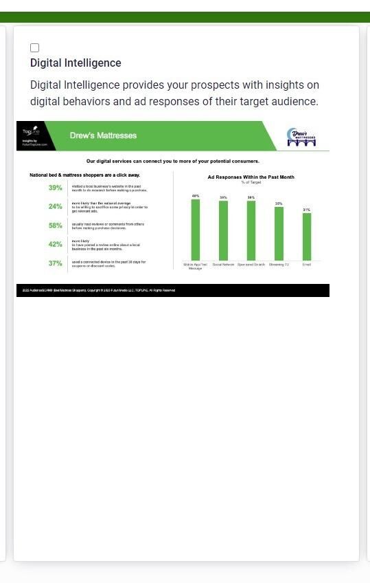 3. TopLine's Digital Intelligence report reveals the online behavior of a category target audience on a national scale, detailing their activities and ad responses over the past 30 days. This information helps you craft effective solutions and provides the rationale behind them.