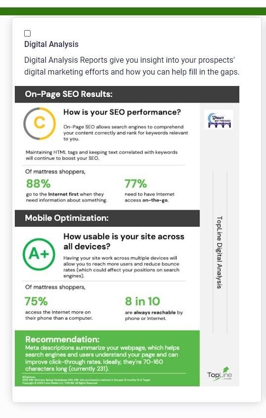 TopLine's Digital Prep and MapIt reports transform digital marketing analytics into actionable insights and pinpoint customer locations, helping clients optimize their marketing strategies with data-driven precision.
